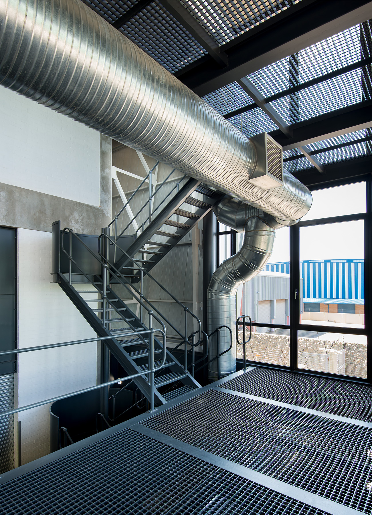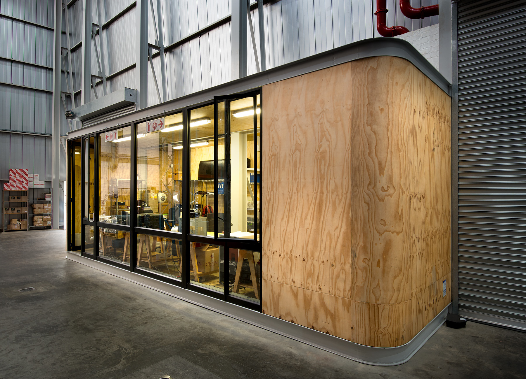 In the interior of the building, a synthesis is created between the brick façade flowing into the offices, & timber, steel & glass partitions creating offices, staircases & marketing shelves. This was carried throughout the rest of the building, with spaces such as the warehouse control office keeping the same material palette.