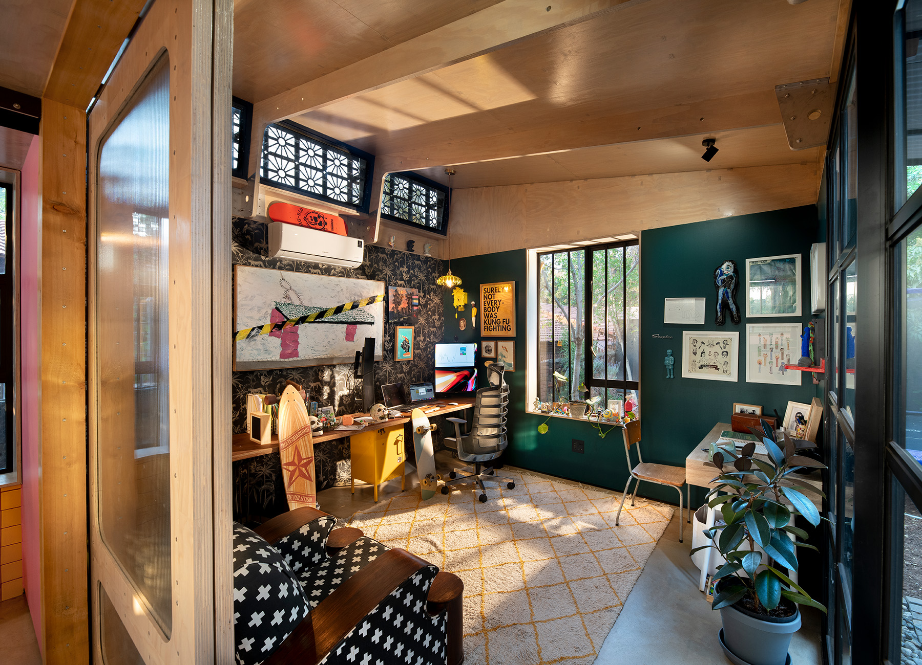 A young couple, both immersed in the creative industries—one an artist, the other a media and brand specialist—commissioned two distinct yet harmonious additions to their home: A compact, independent office to support their professional work, and a doll’s house for their daughter, designed as a playful and imaginative space. The brief emphasized minimal disruption to domestic life and seamless integration into the existing home environment.
