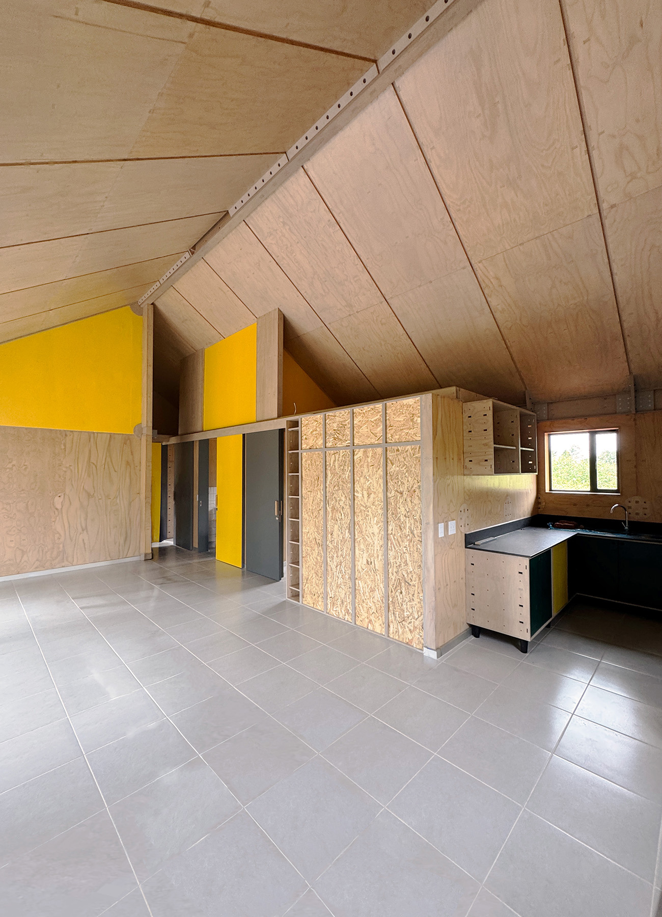 Children’s Dream Home exemplifies this vision, showcasing both architectural innovation and environmental responsibility. Designed as a low-maintenance, cost-effective three-bedroom home, it features thoughtful spatial planning and the creative use of materials. The exterior is wrapped in corrugated sheeting, lending the house a cohesive, contemporary industrial aesthetic while ensuring durability and ease of upkeep. The use of plywood not only reduces costs but also supports sustainable building practices.