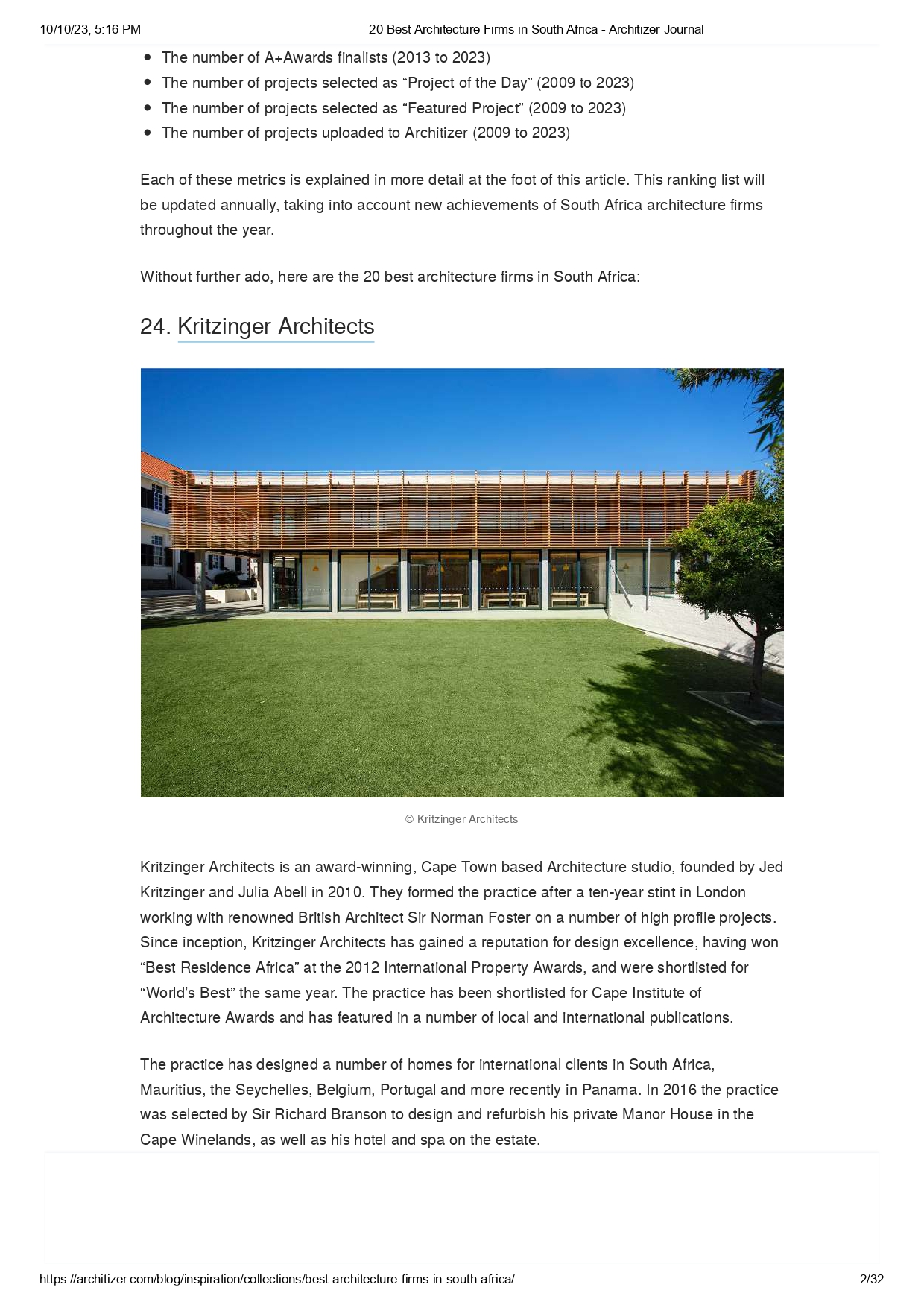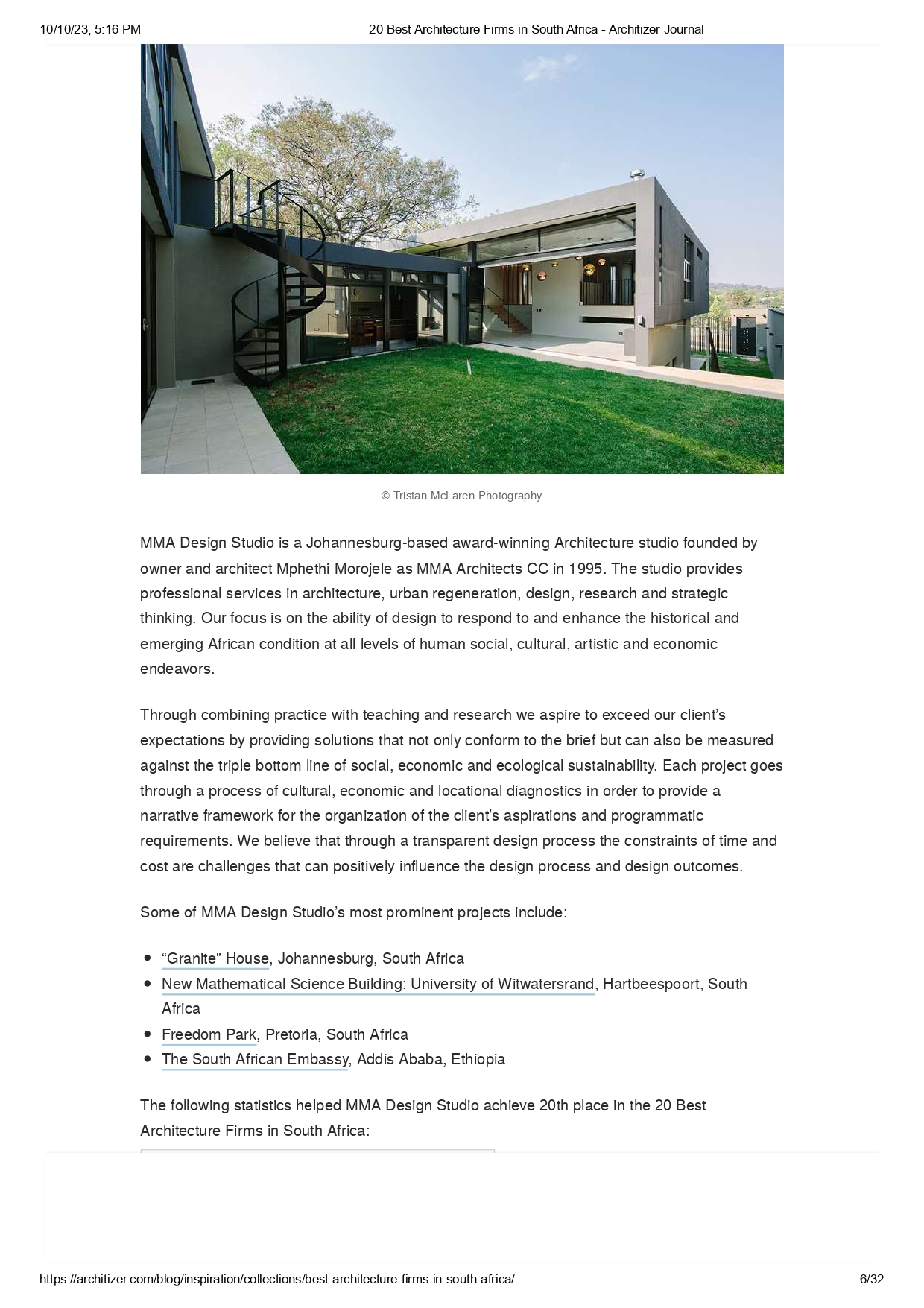 We’re proud to share that Architizer has featured Earthworld Architects & Interiors as one of the Best Architecture Firms in South Africa. This recognition highlights our ongoing commitment to thoughtful, sustainable design and meaningful architecture. We’re honoured to be included among some of the country’s leading practices.